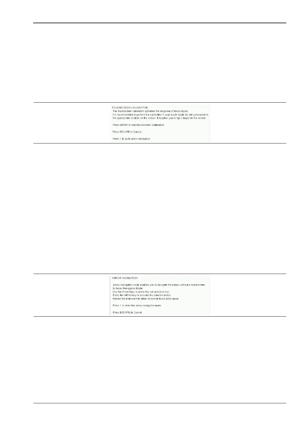 Calibration optimizes the response of touch input. It is recommended if the instrument does