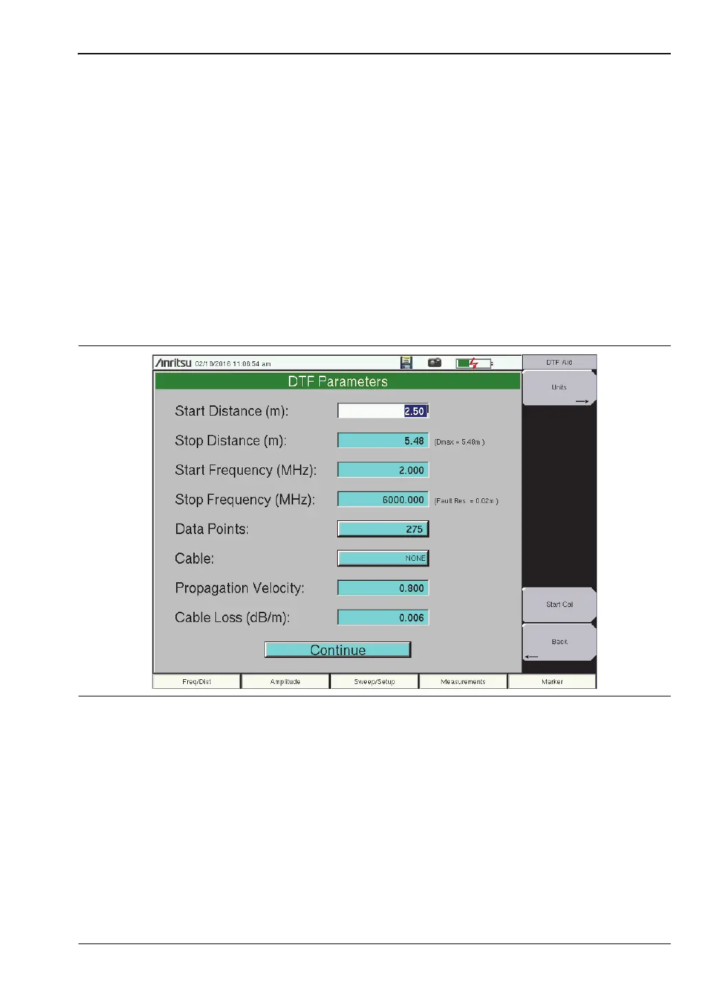1. Press the Measurements main menu key and select DTF Return Loss or DTF VSWR.