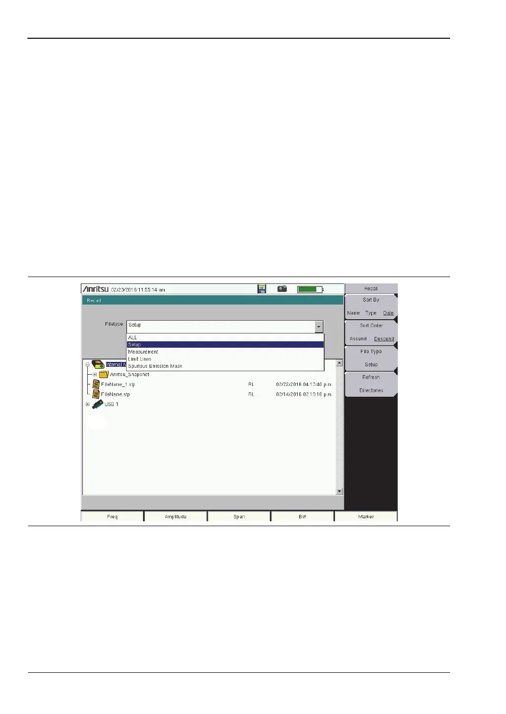 file types vary with the measurement mode. Use the touch screen, rotary knob, or the