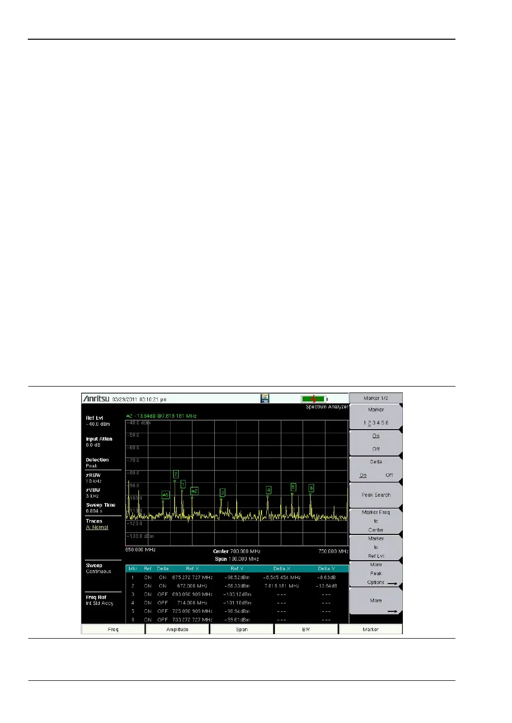 1. Press the Marker123456 submenu key and select the desired delta marker.