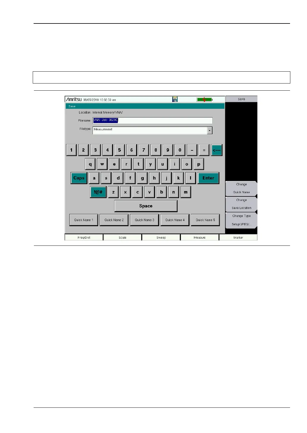 Note The Save Dialog Box will vary based on current measurement mode.