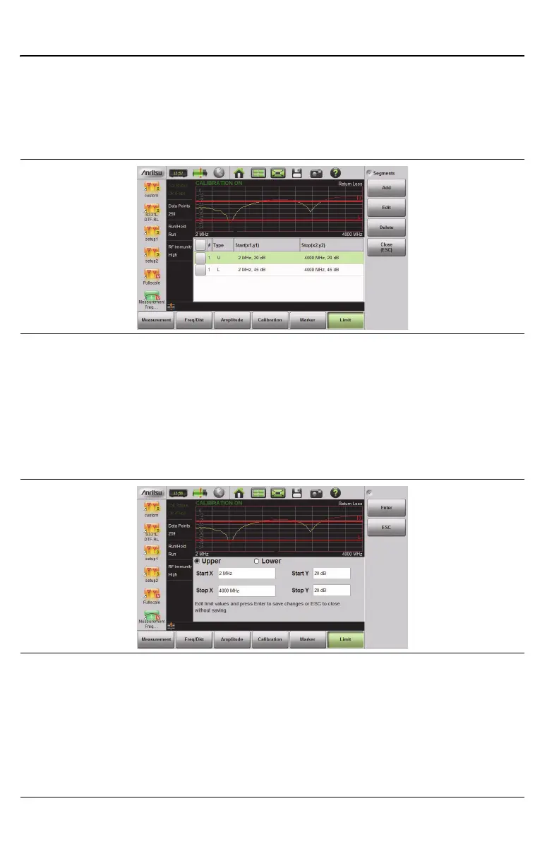 When adding or editing a segmented limit line, a dialog box (Figure 3-19)