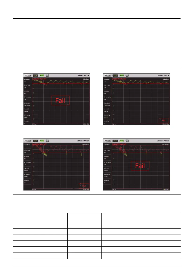 Cable Loss Short or Open Pass when the trace is above the limit line