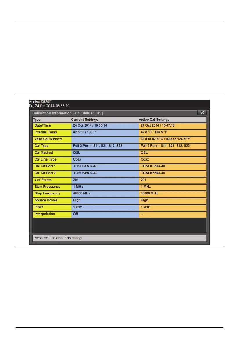 and press Cal Info. A summary of the Active Cal Settings and the Current