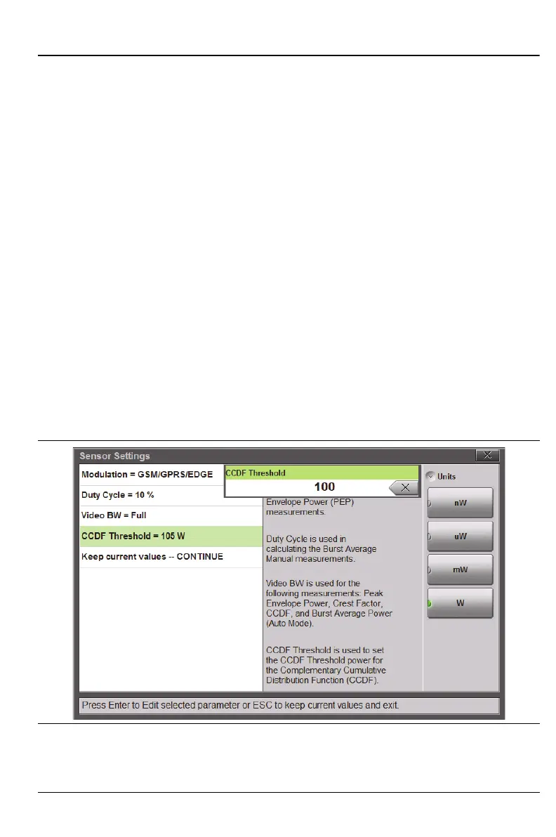 value. In the Sensor Settings dialog, highlight the CCDF Threshold ... row and