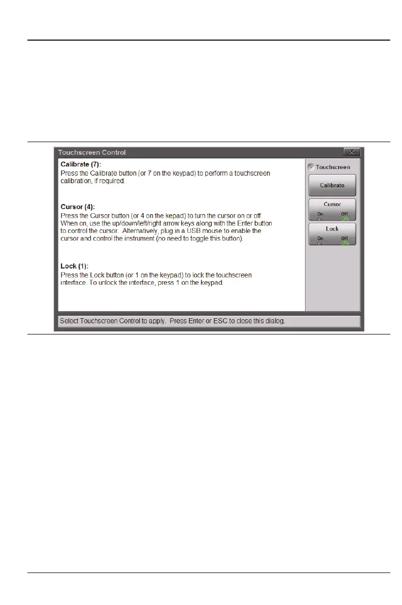 The touchscreen menu includes touchscreen calibration, an on screen cursor