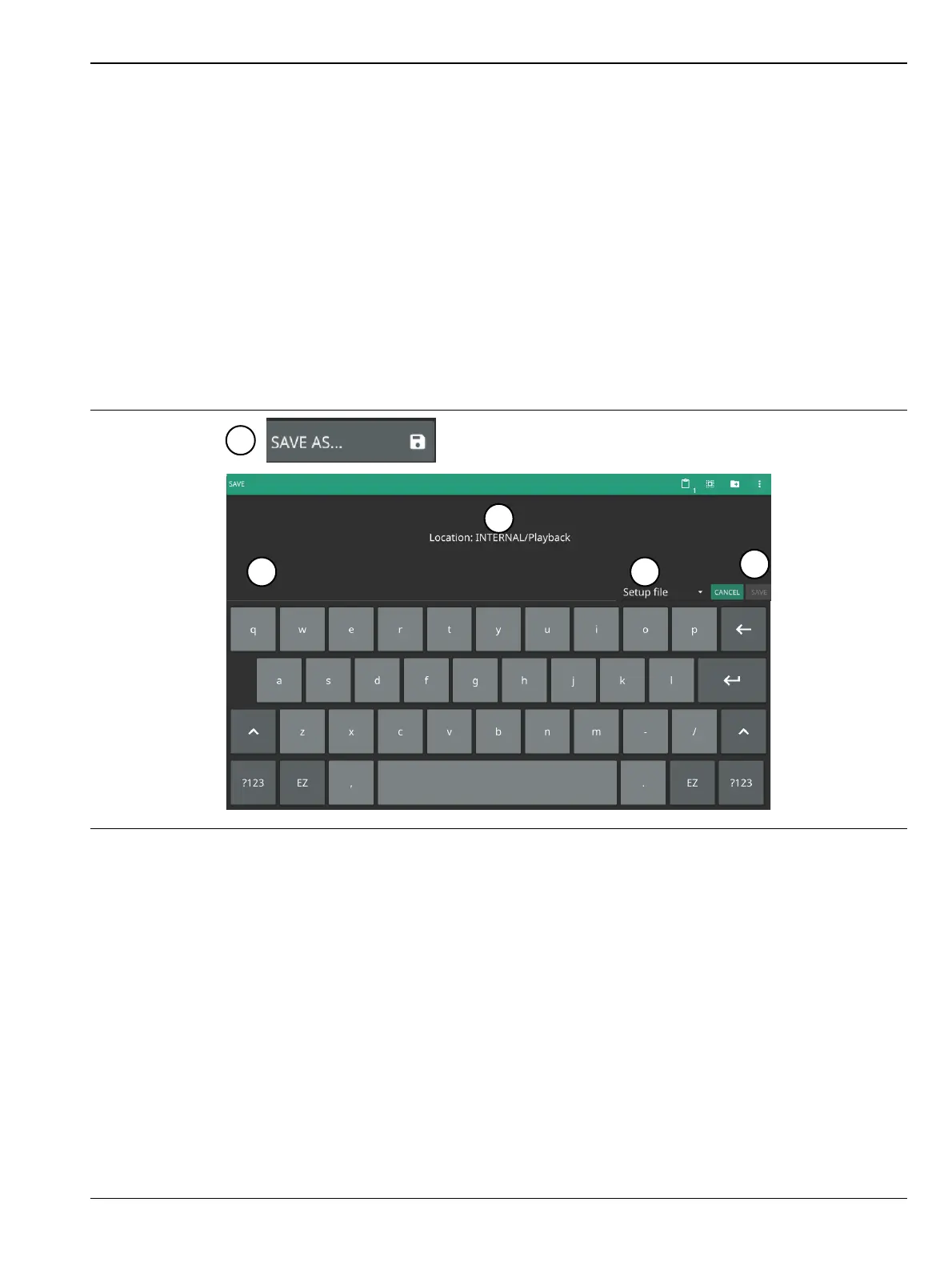 3. Enter the desired file name using the touchscreen keyboard.
