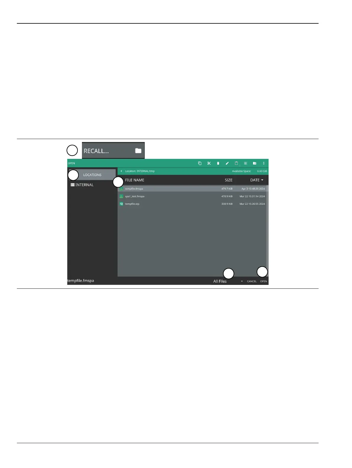 5. Select OPEN to recall the file.