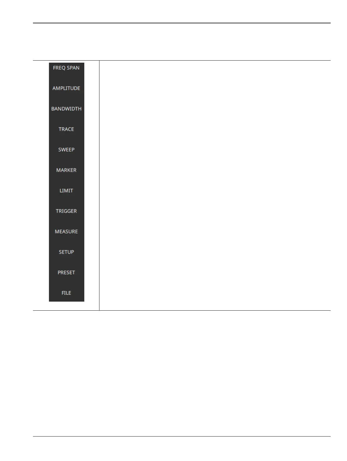 Instrument setup, control, and measurement functions are performed through the use of menus. Menu