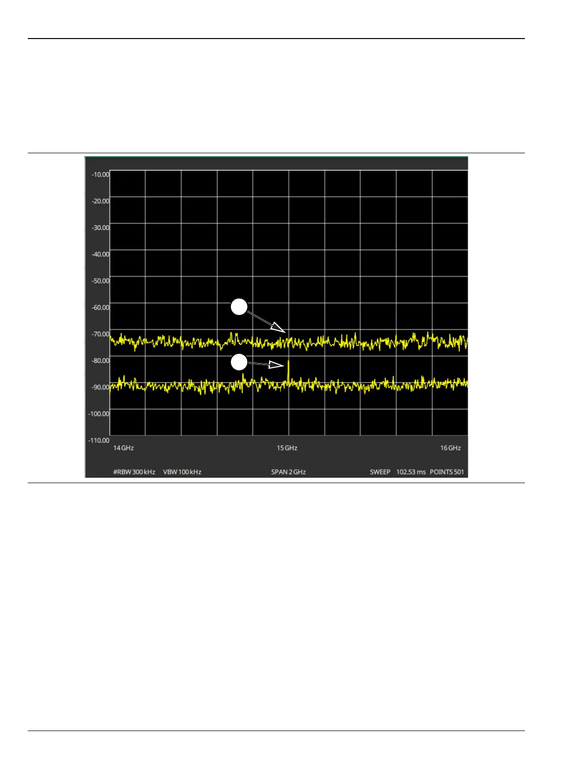 menu. Figure 3-5 shows the noise floor with the preamplifier off (1) and on (2). Note that when the preamplifier