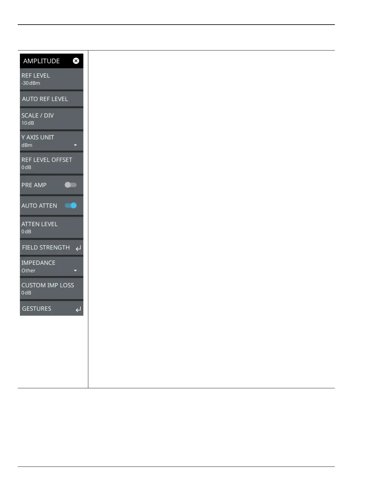 ATTEN LEVEL: When auto attenuation is off, the attenuation value can be set manually