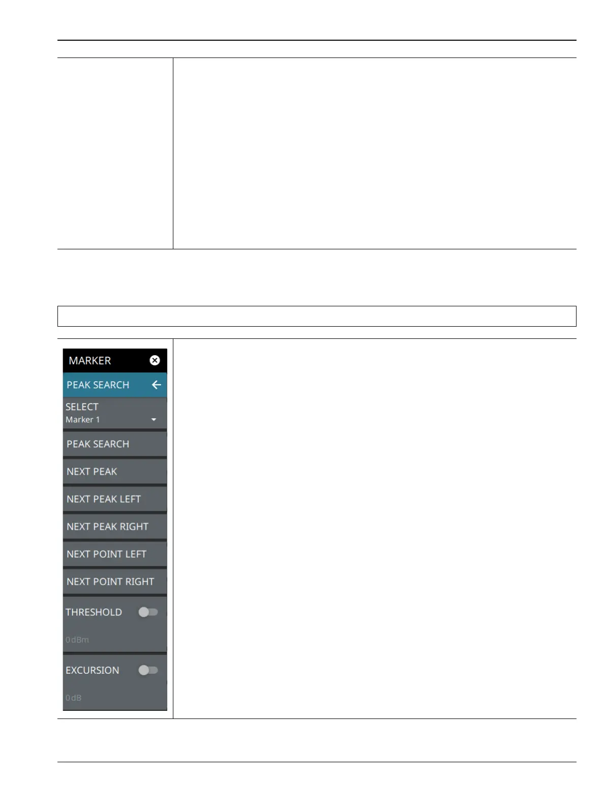 selected marker. If no markers are on, pressing the PEAK SEARCH button on the control