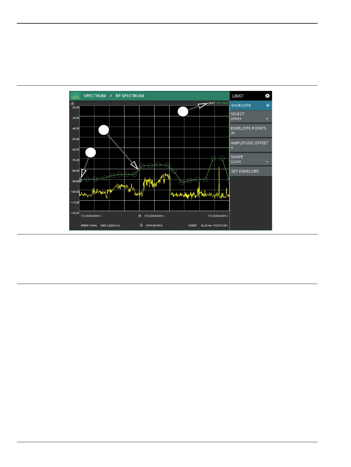 Limit line envelope parameters are set using the “LIMIT ENVELOPE Menu” on page 3-56. The limit line