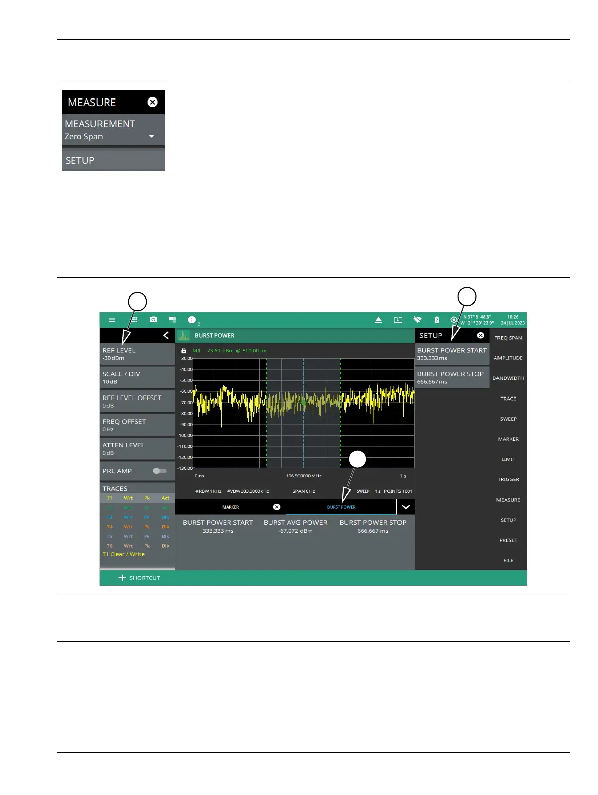 MEASUREMENT: Selects either zero span or burst power measurement.