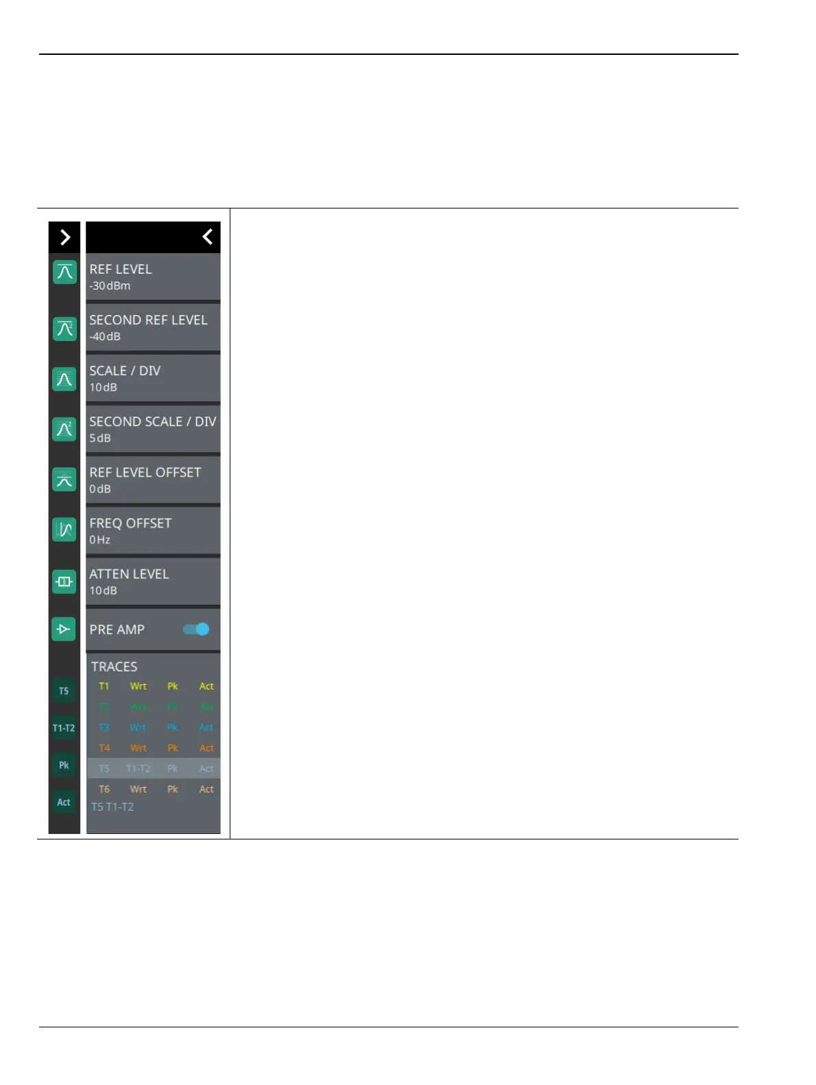 will show you the settings of the trace used to fill the spectrogram. The reference
