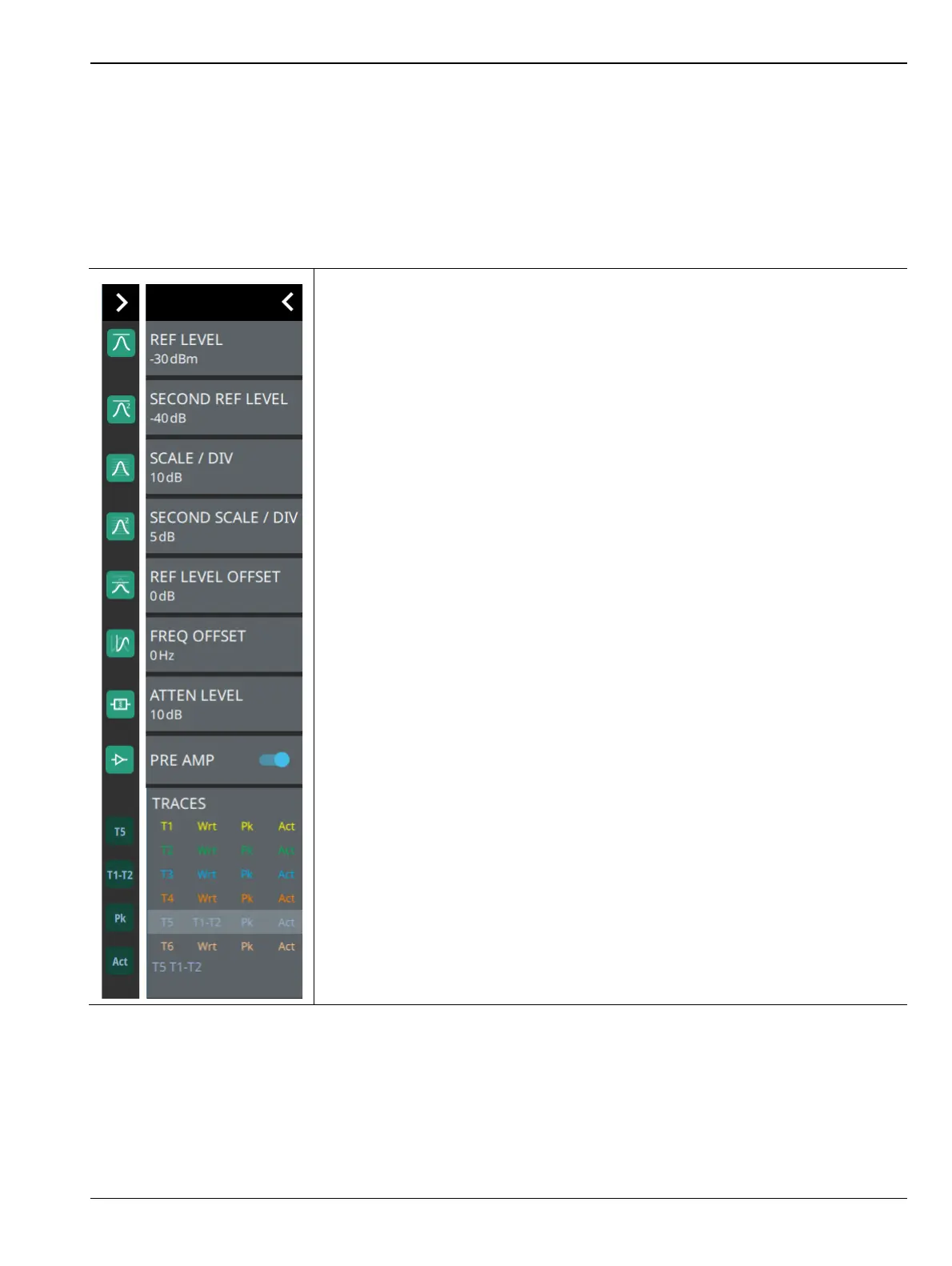 will show you the settings of the trace used to fill the spectrogram. The reference