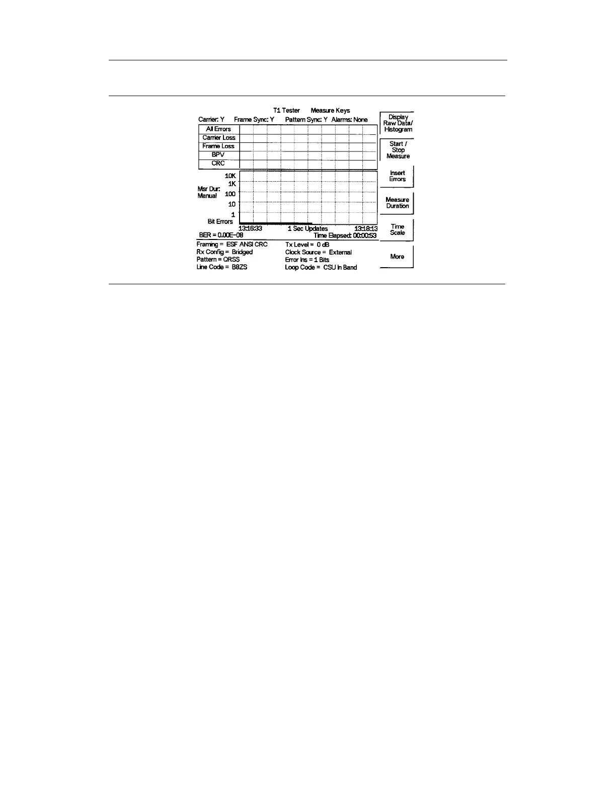 Figure 7-6. T1 BERT Measurement Display with Histogram