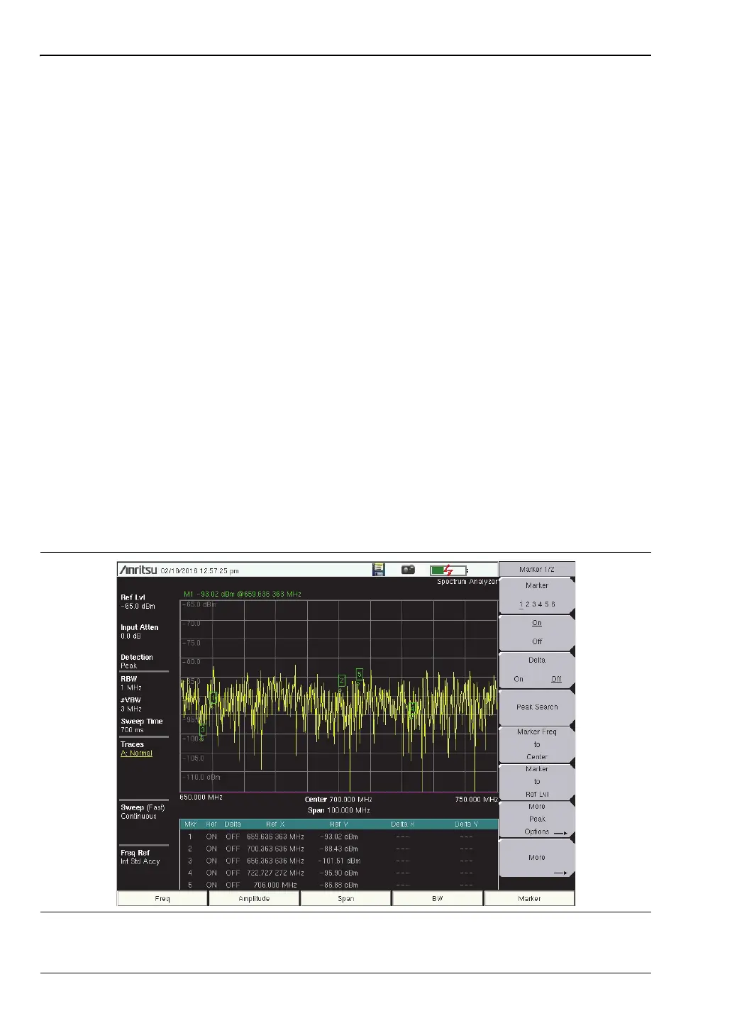 1. Press the Marker 1 2 3 4 5 6 submenu key and select the desired delta marker. The
