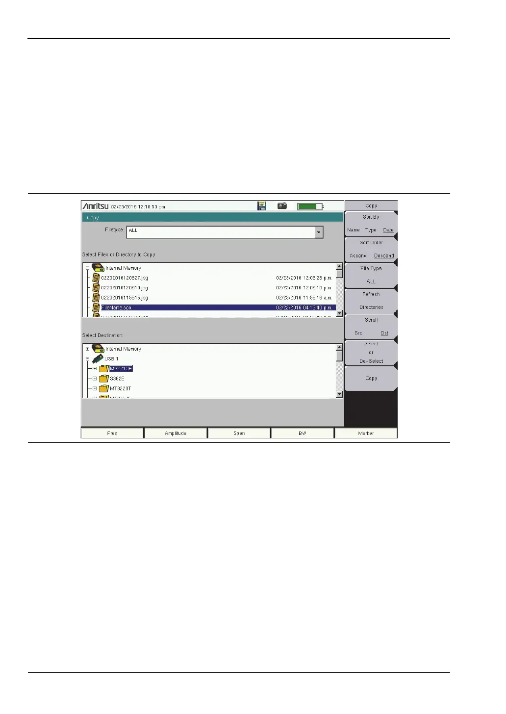 and files are sorted in the displayed list. Refer to “Copy Menu” on page 4-14.