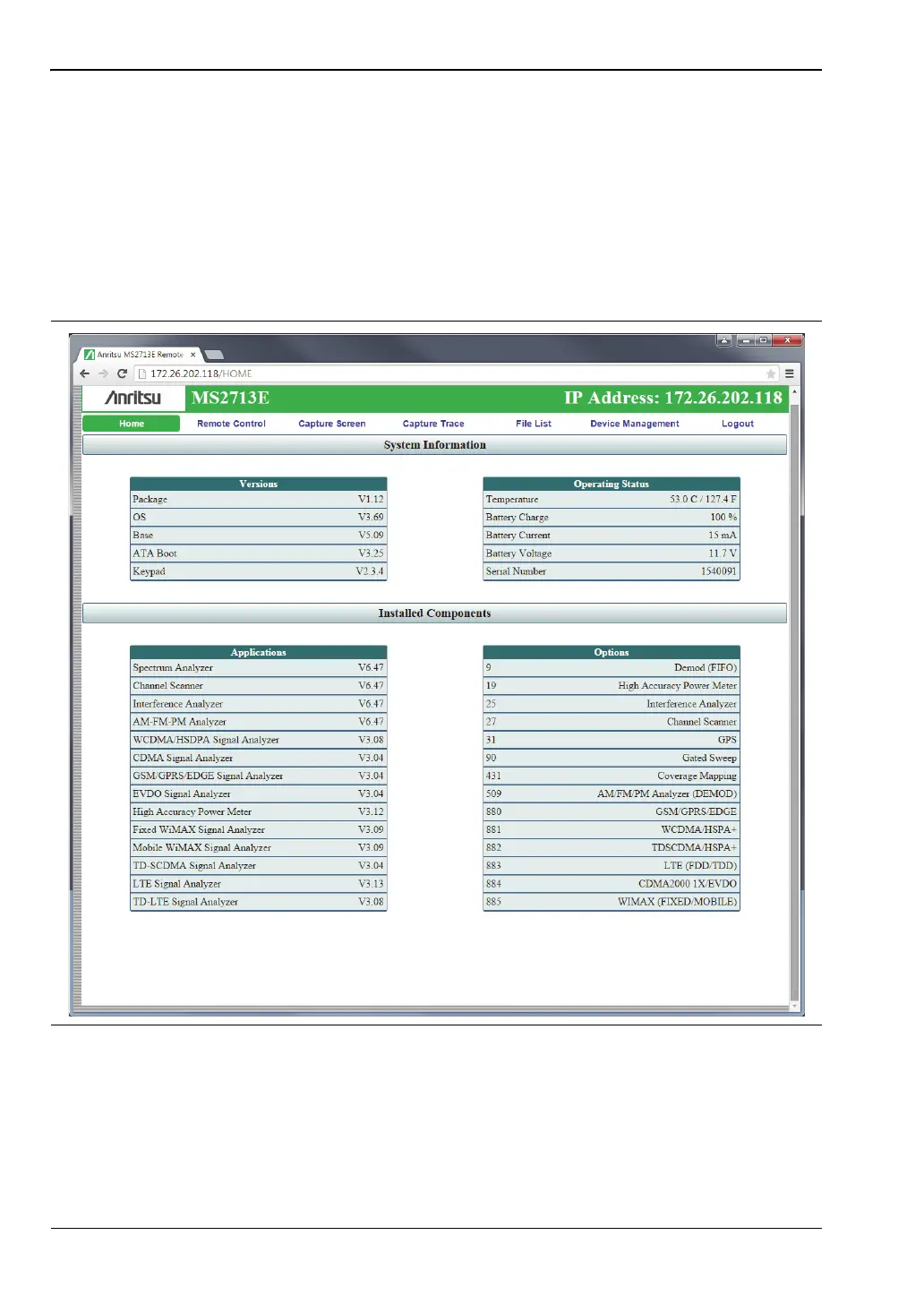 The Web Remote Control Home page lists the same information as what is displayed on the