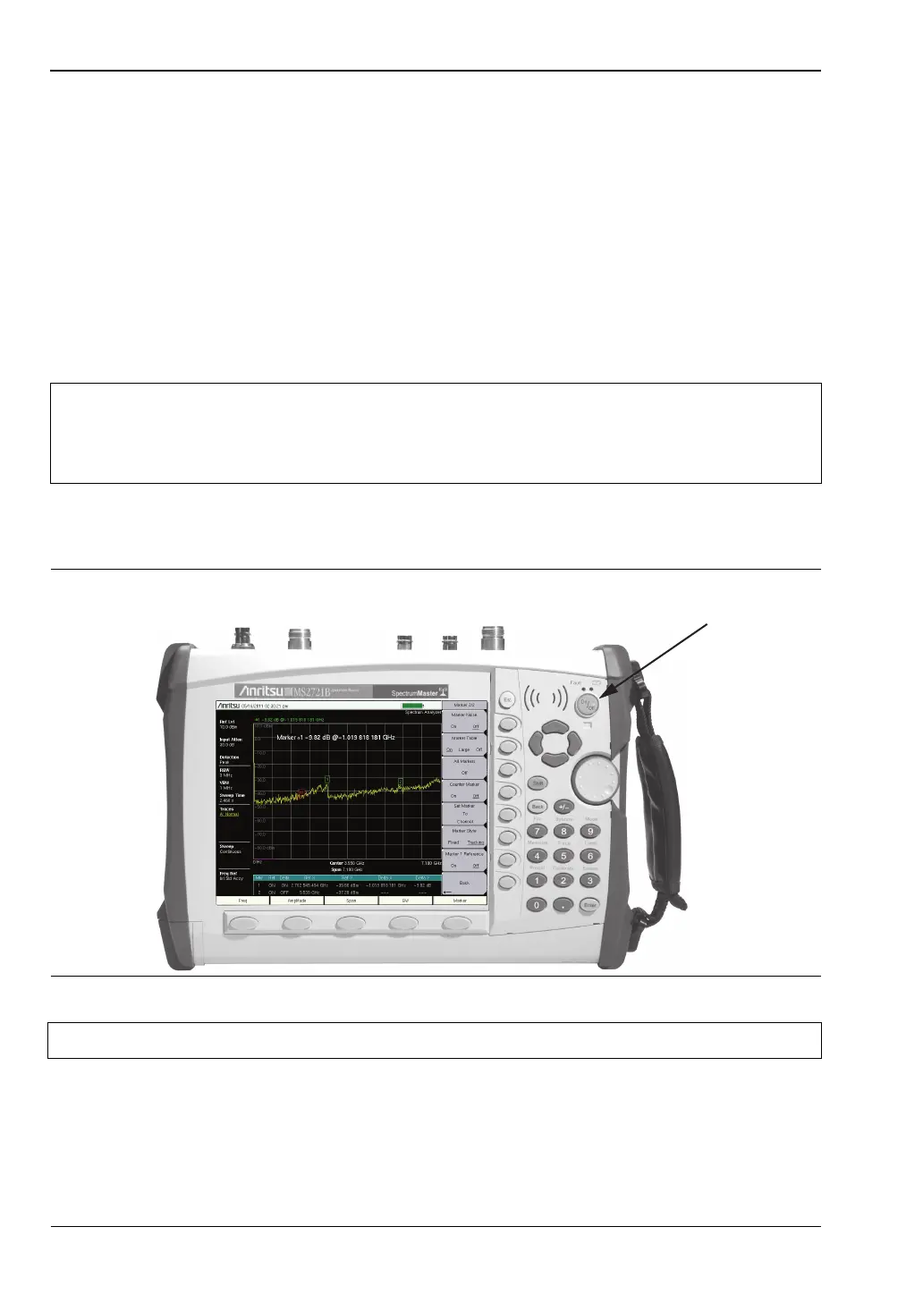 To turn on the Spectrum Master (MS272xB or MS8911B), press the On/Off button on the