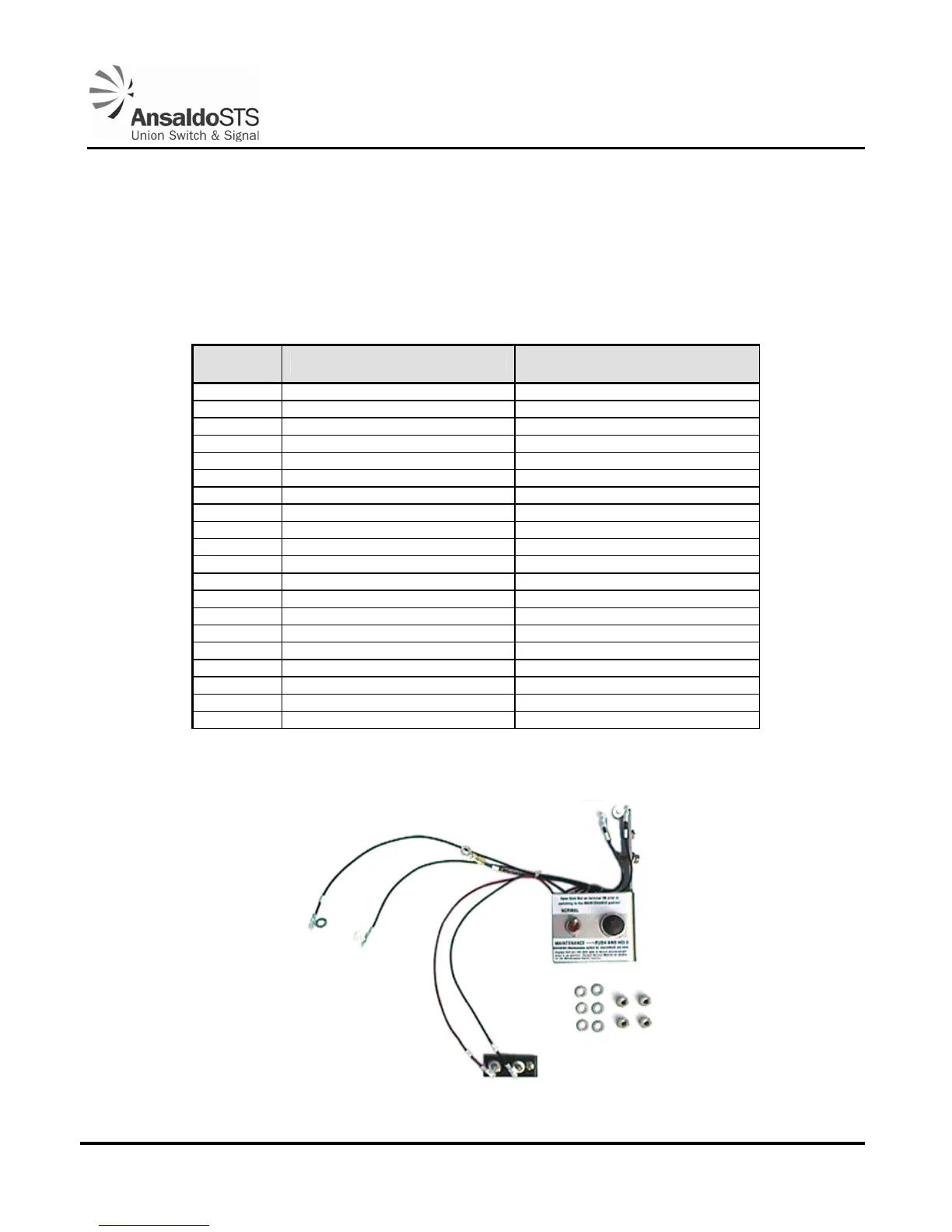 Table 5-10 - Model 95 Maintenance Switch Retrofit Assembly