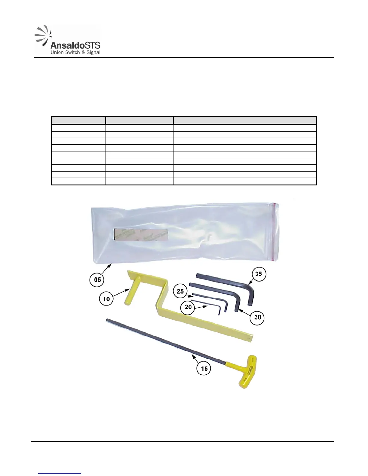 Table 5-11 - Parts List for Tool Kit (N46707001)