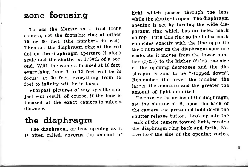 Ansco Memar - Zone Focusing Method; Understanding the Diaphragm