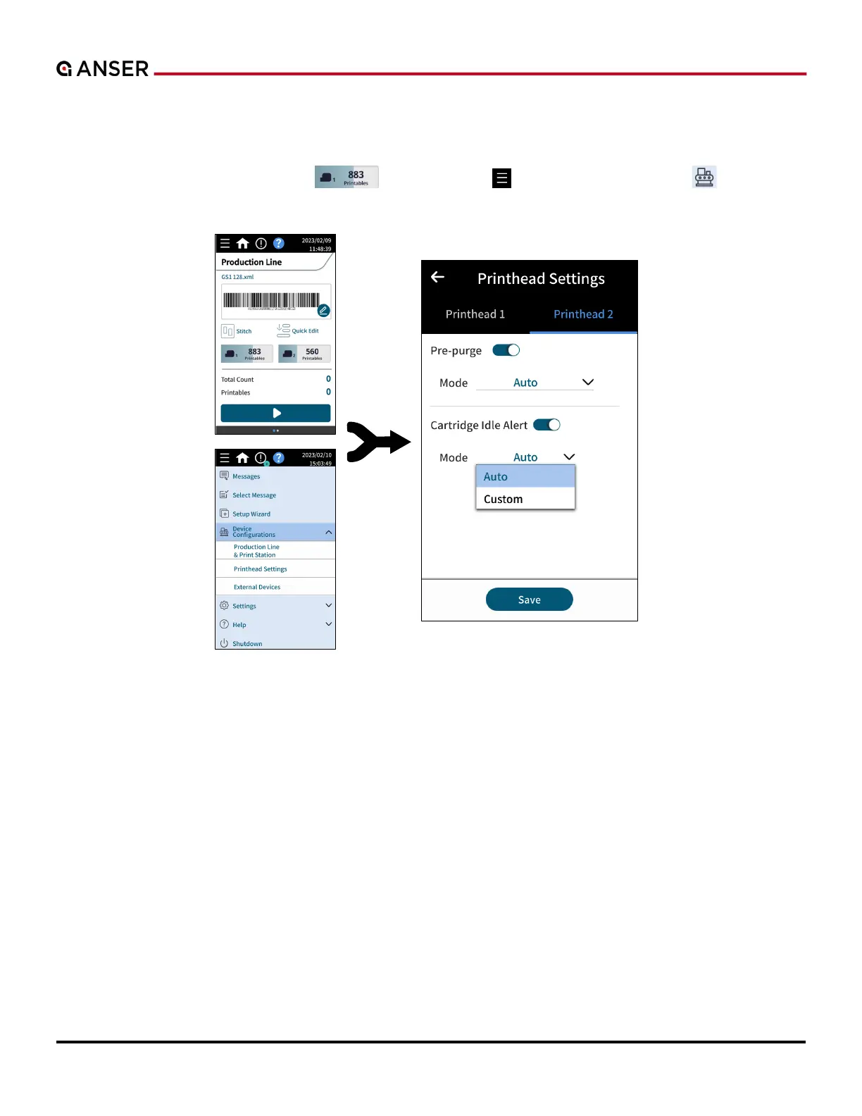 ”, or use Menu “ ” > Device Configurations “ ” > Printhead