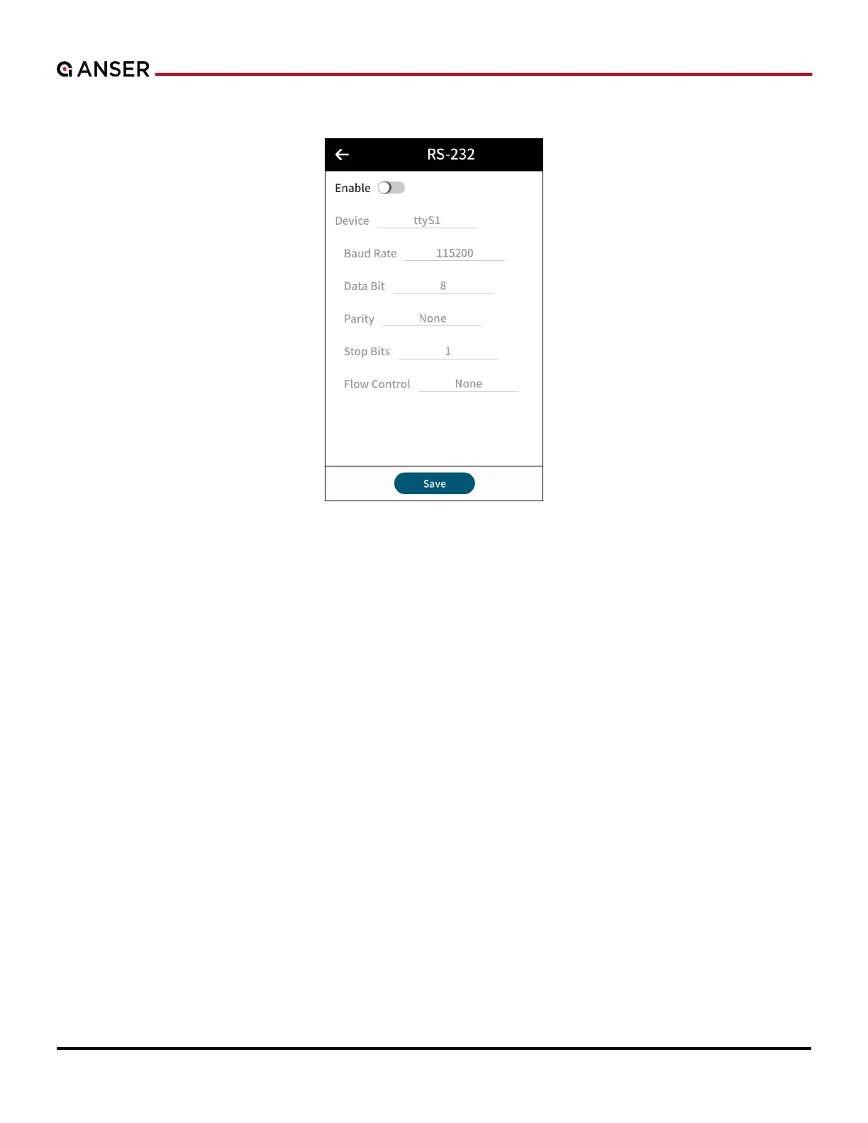 RS-232 menu displays the settings for configuring the RS-232 port interface. Enable this setting when working with