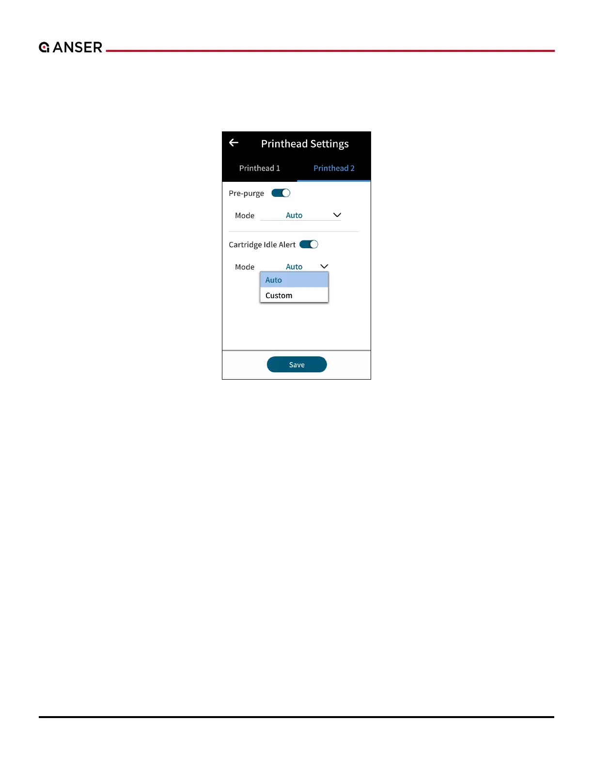 Figure 2-6. Printhead Settings — Cartridge Idle Alert