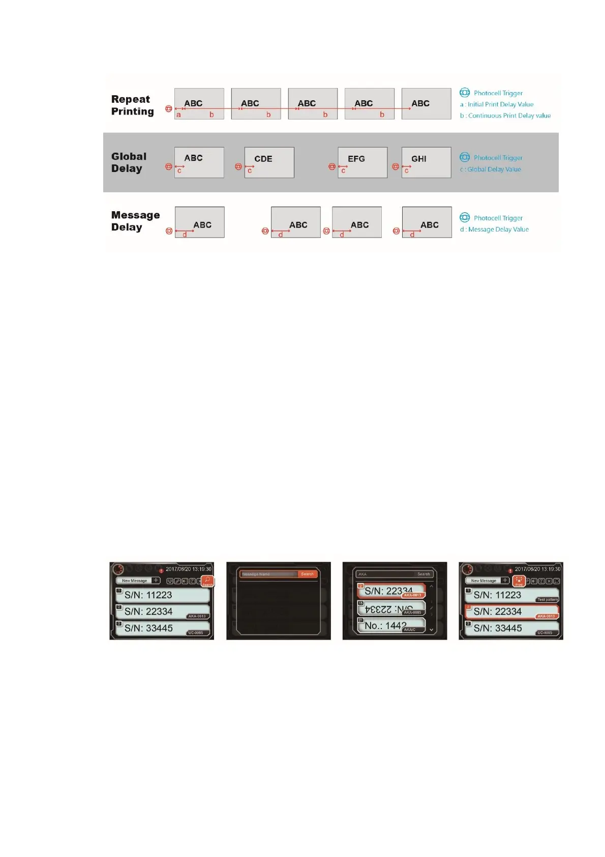 Setting values contain “Initial print delay” and “Continuous print delay”.