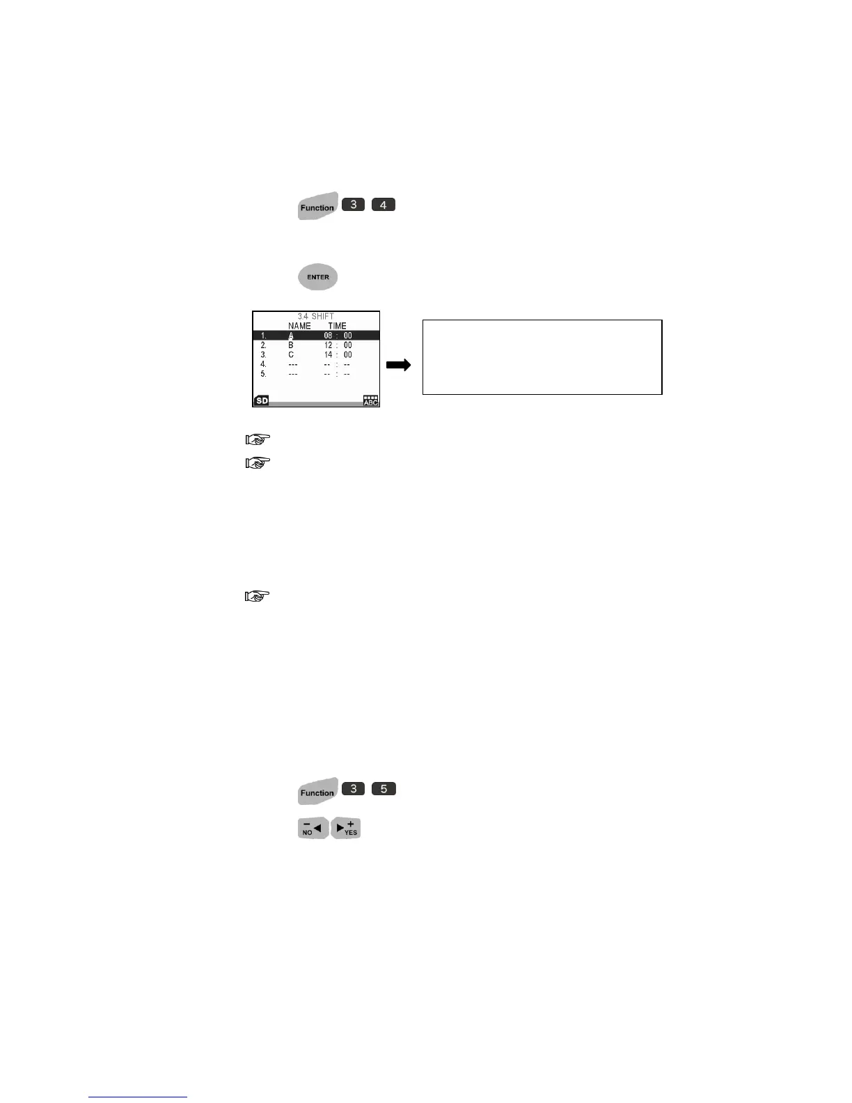 2. Highlight to any item then enter shift name and time.