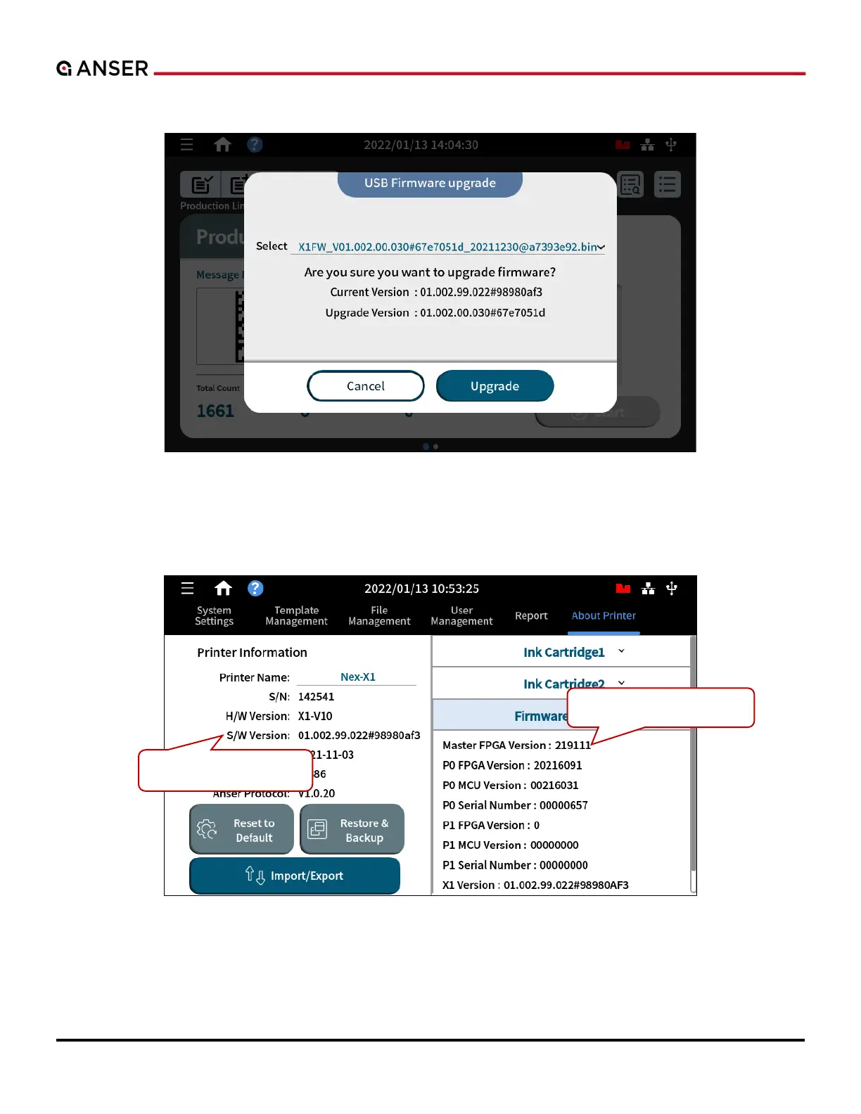 to confirm the firmware versions of printer and of printhead are both updated.
