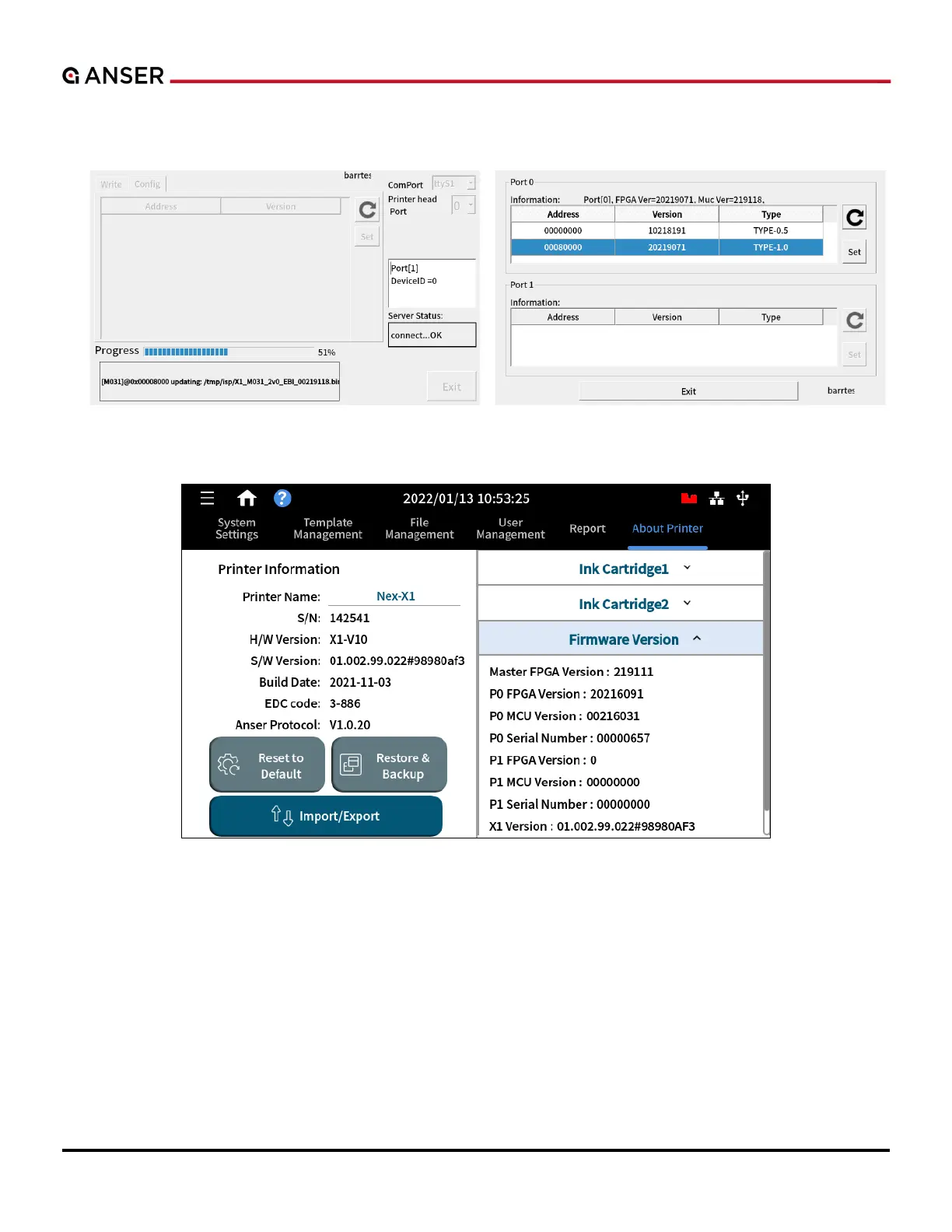 4. Go to Menu > Settings > About Printer > Firmware Version, and P0 & P1 FPGA should be shown.