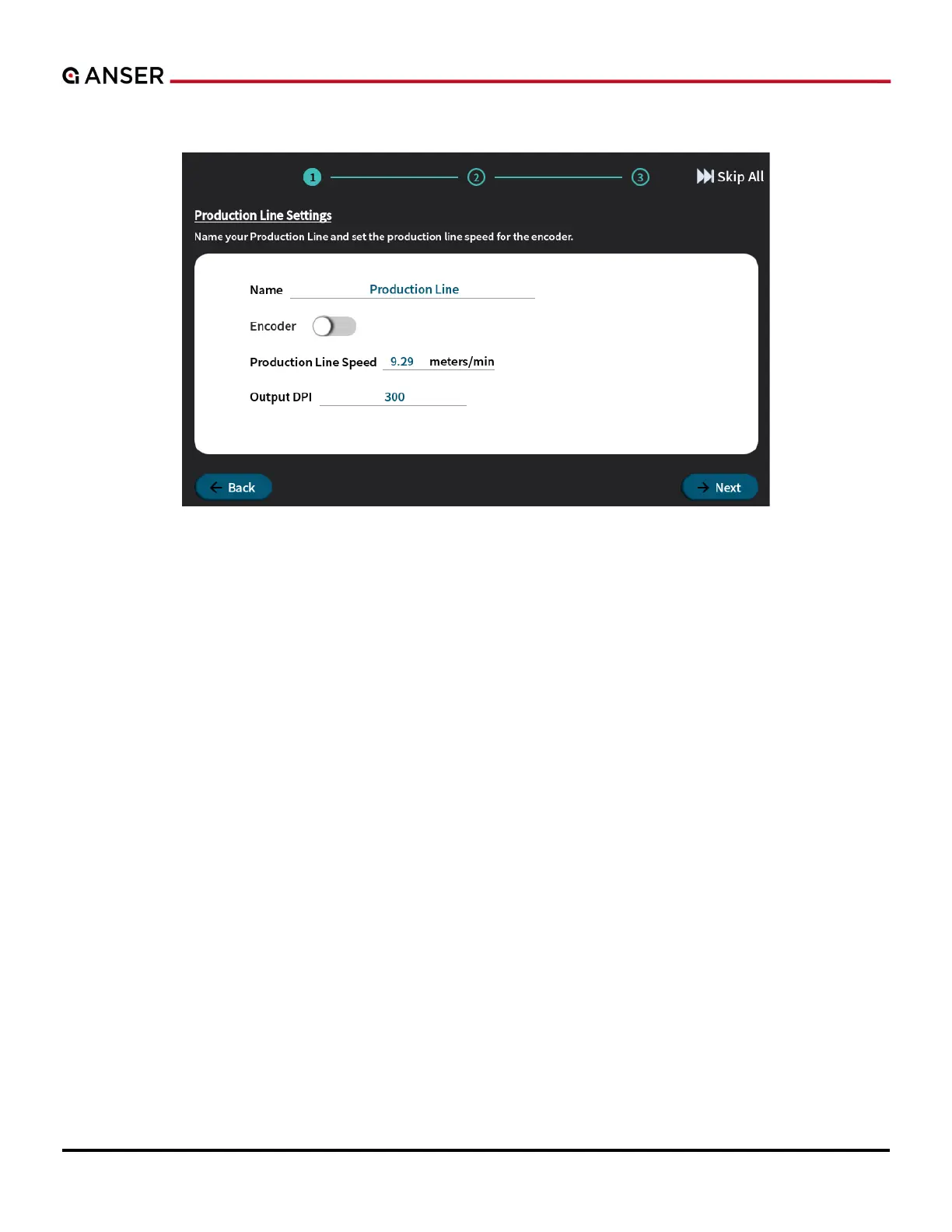 Anser X1 - Figure 1-7. X1 System Initial Setup - Production Line Speed