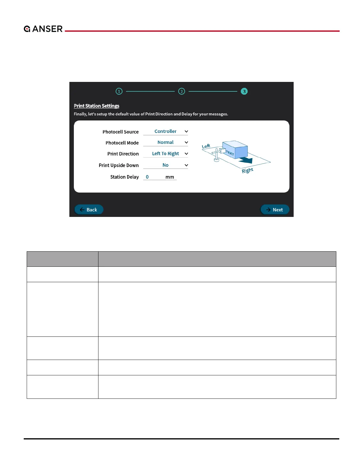 The last step in the initial setup wizard is to configure the settings related to photocell sensor, print direction and station