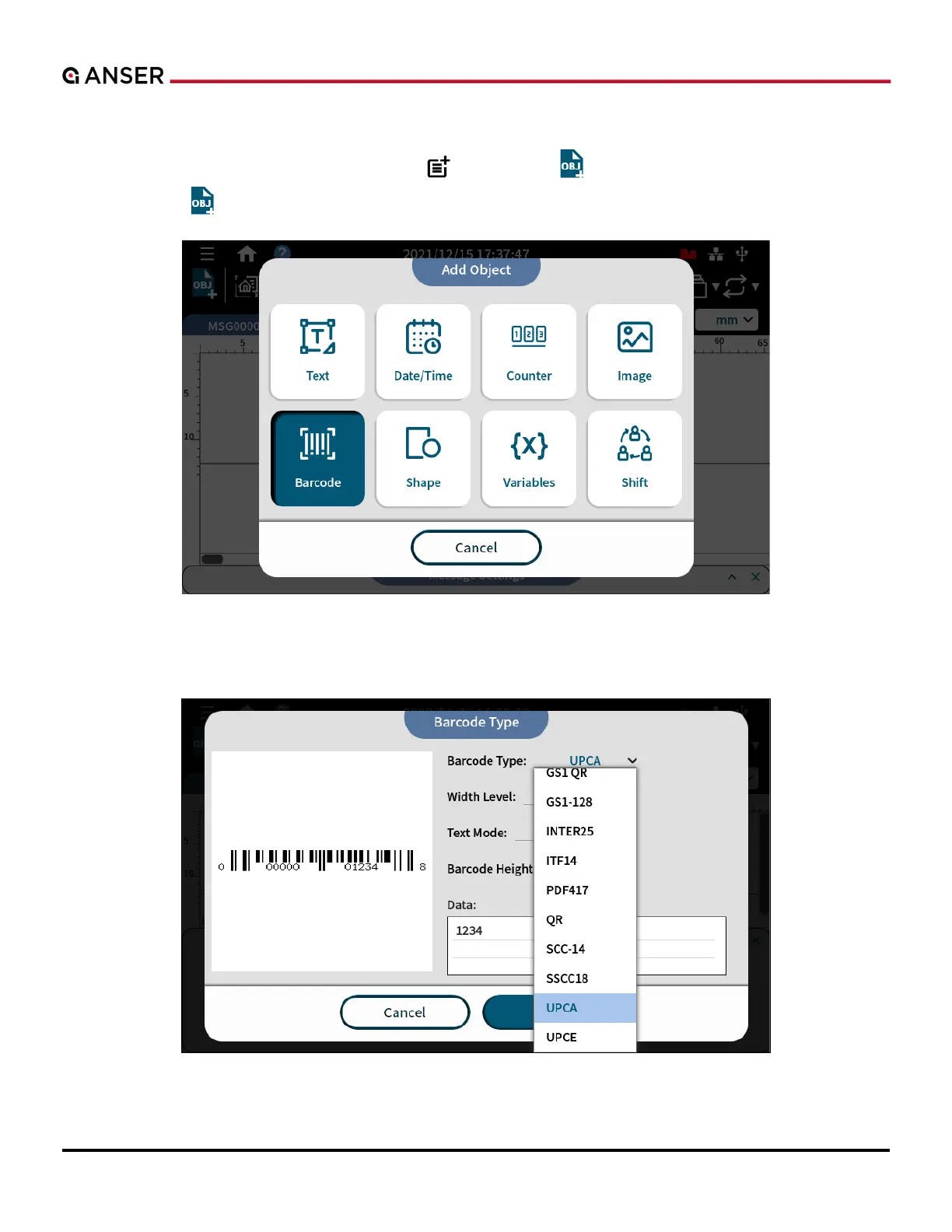 STEP 1: > Barcode. If you are at X1 Message Editor,