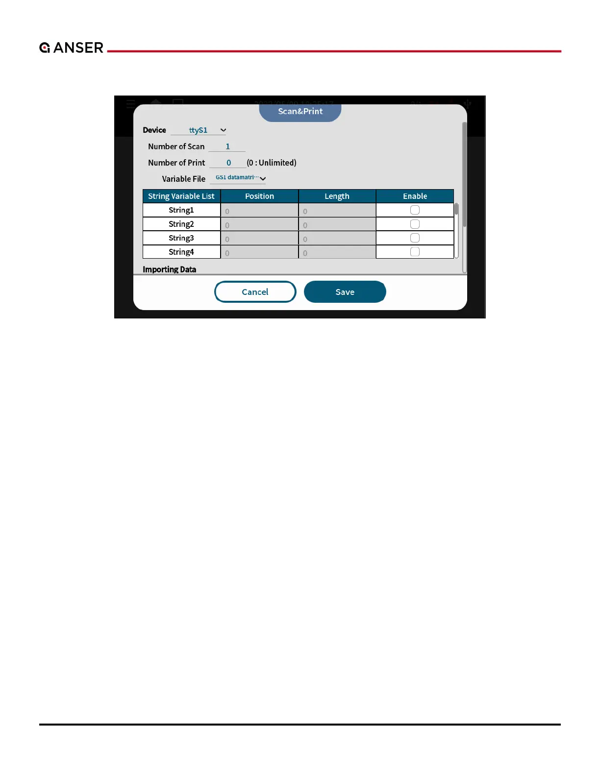 Scan & Print menu allows users to manage the serial data when using the USB (virtual COM) or RS-232 interfaces.