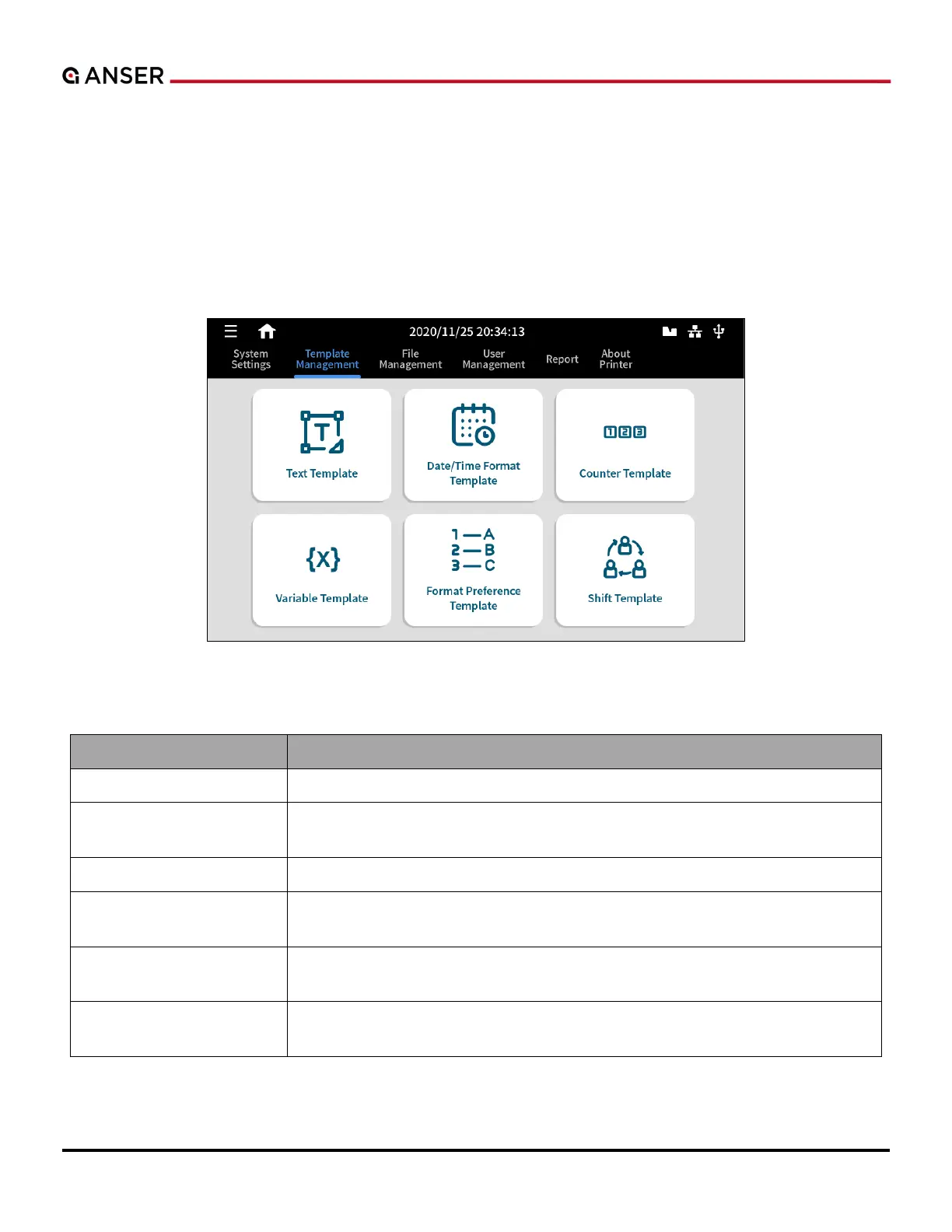Table 1-12. Detailed Descriptions in Template Manage Settings