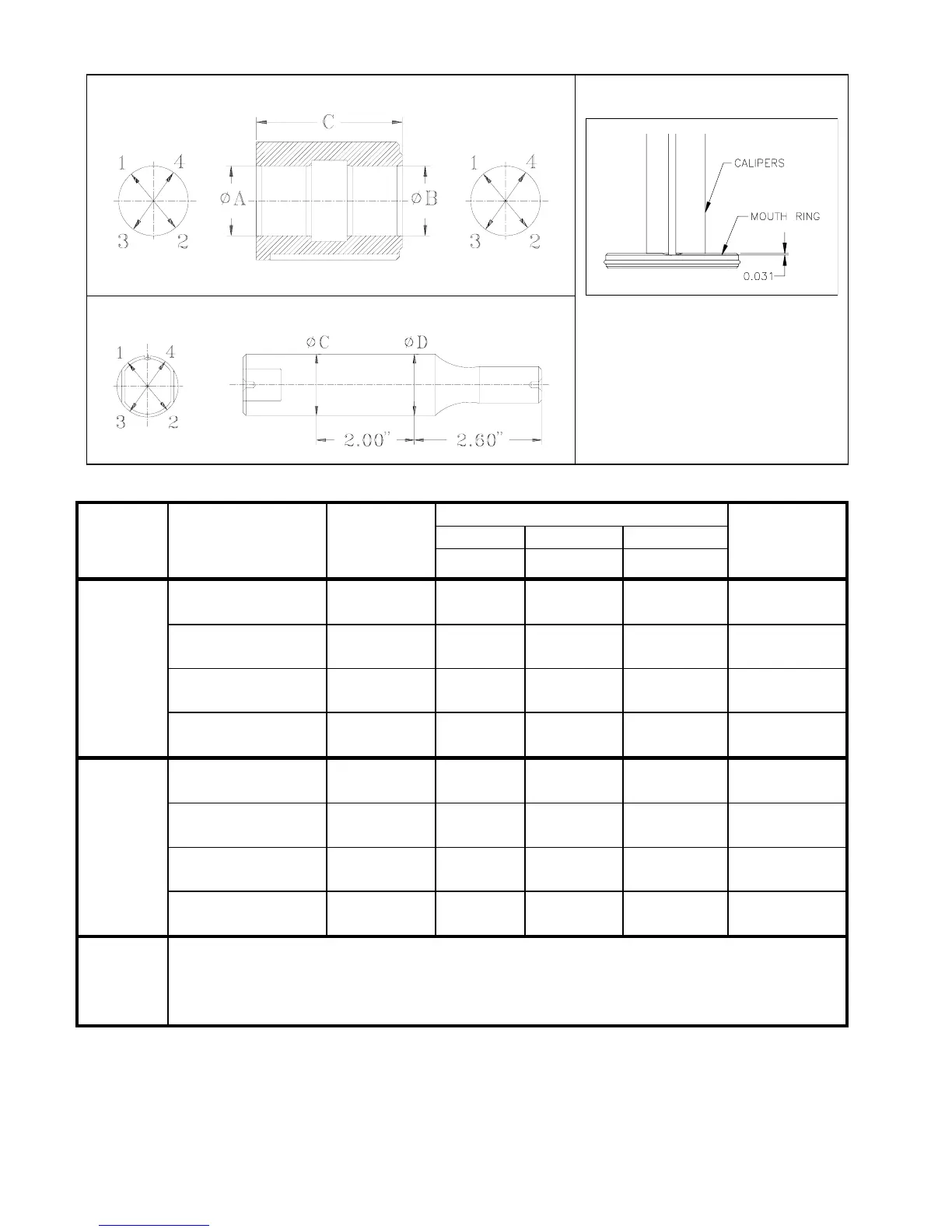 ANSIMAG K+1516 - 7-c. Detailed Wear Parts Tolerances; Bushing and Shaft Wear Limits; Mouth Ring Groove Depth Specification