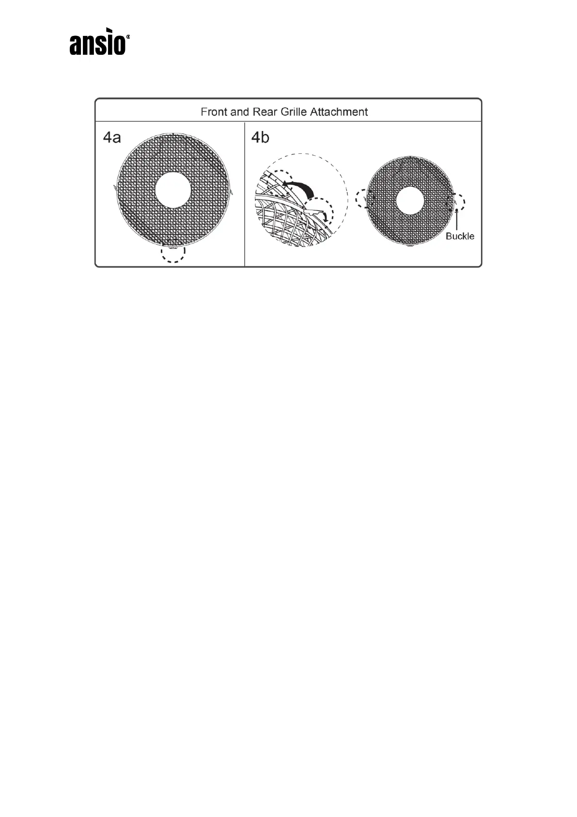 4b. Press down the two side buckles to fasten the front and rear grille. Use the metal nut