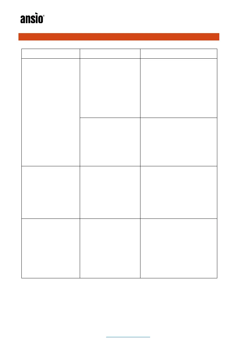 ansio 1308 - Troubleshooting; No Power or Indicator Light; Heater Stops During Operation; Frequent Shutoffs;Overheating