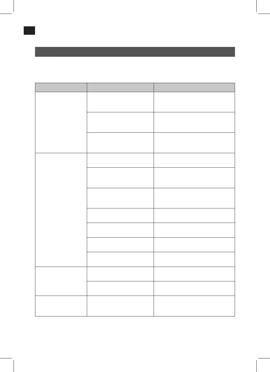 Tabela wykrywania usterek służy do ustalenia przyczyny często występujących problemów oraz zawiera