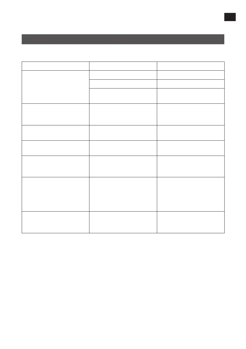 Felsökningstabellen används för att identiera orsaken till vanliga problem och hur de ska avhjälpas.