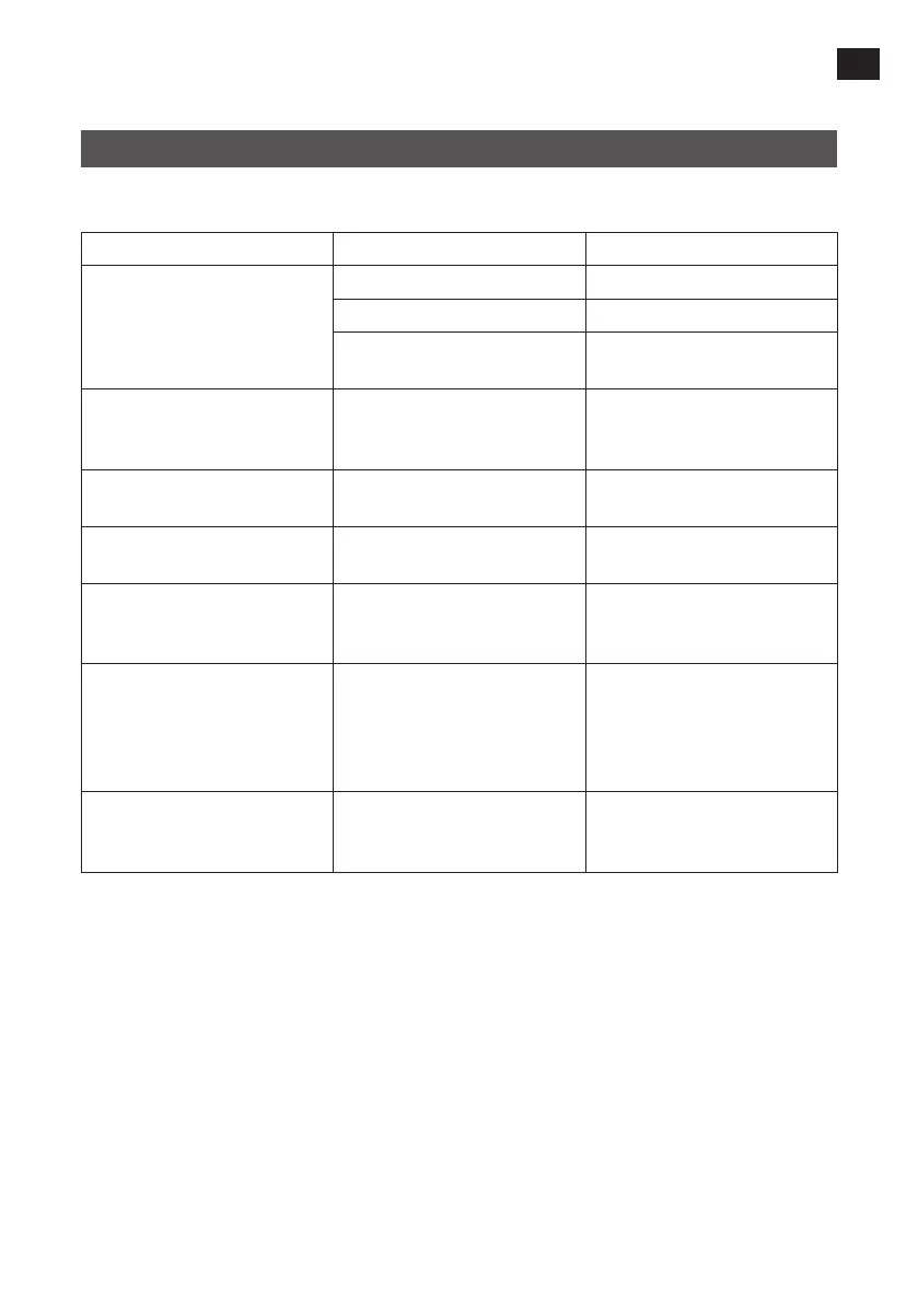 Feilsøkingstabellen brukes for å identisere årsaken til vanlige problemer og gir deg forslag til løsning.