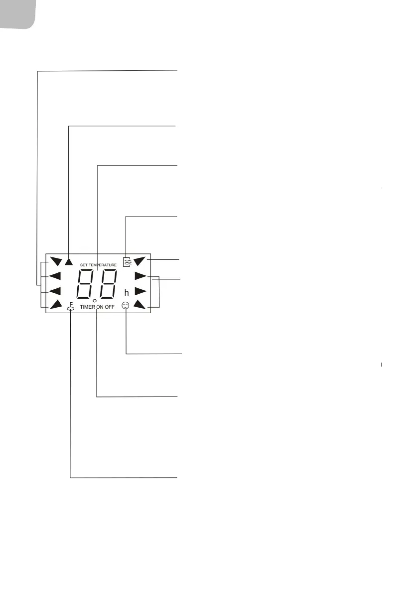 timerinställning (0–24 timmar). Visas inte i läge FAN.