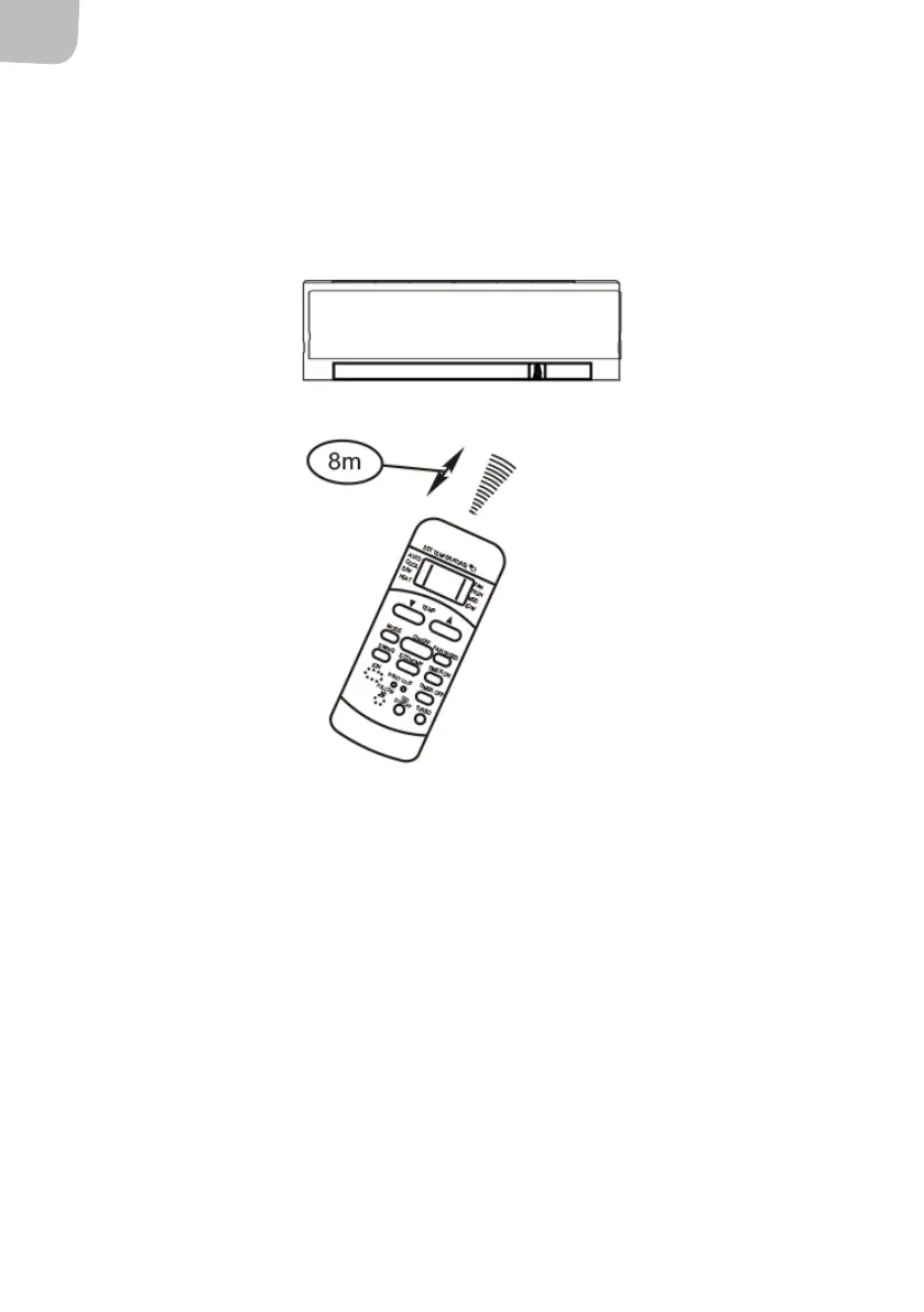 • Fjernkontrollen har en rekkevidde på 8 meter. Rett ernkontrollen mot mottakeren på apparatet.