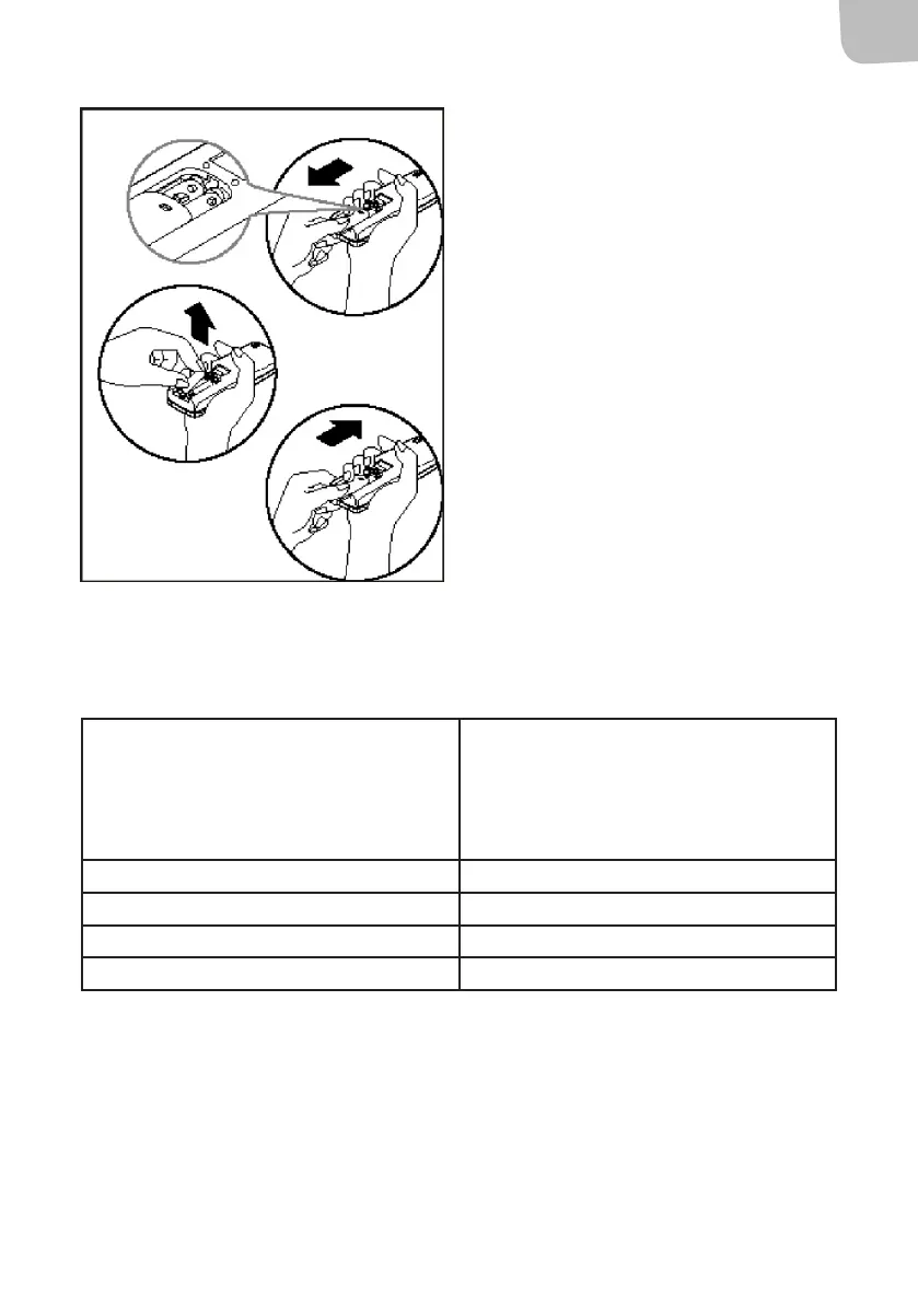 Fjernkontrollen har to batterier (R03) under et