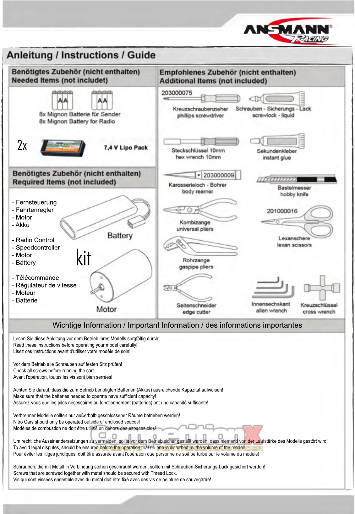 Lesen Sie diese Anleitung vor dem Betrieb ihres Modells sorgfältig durch!